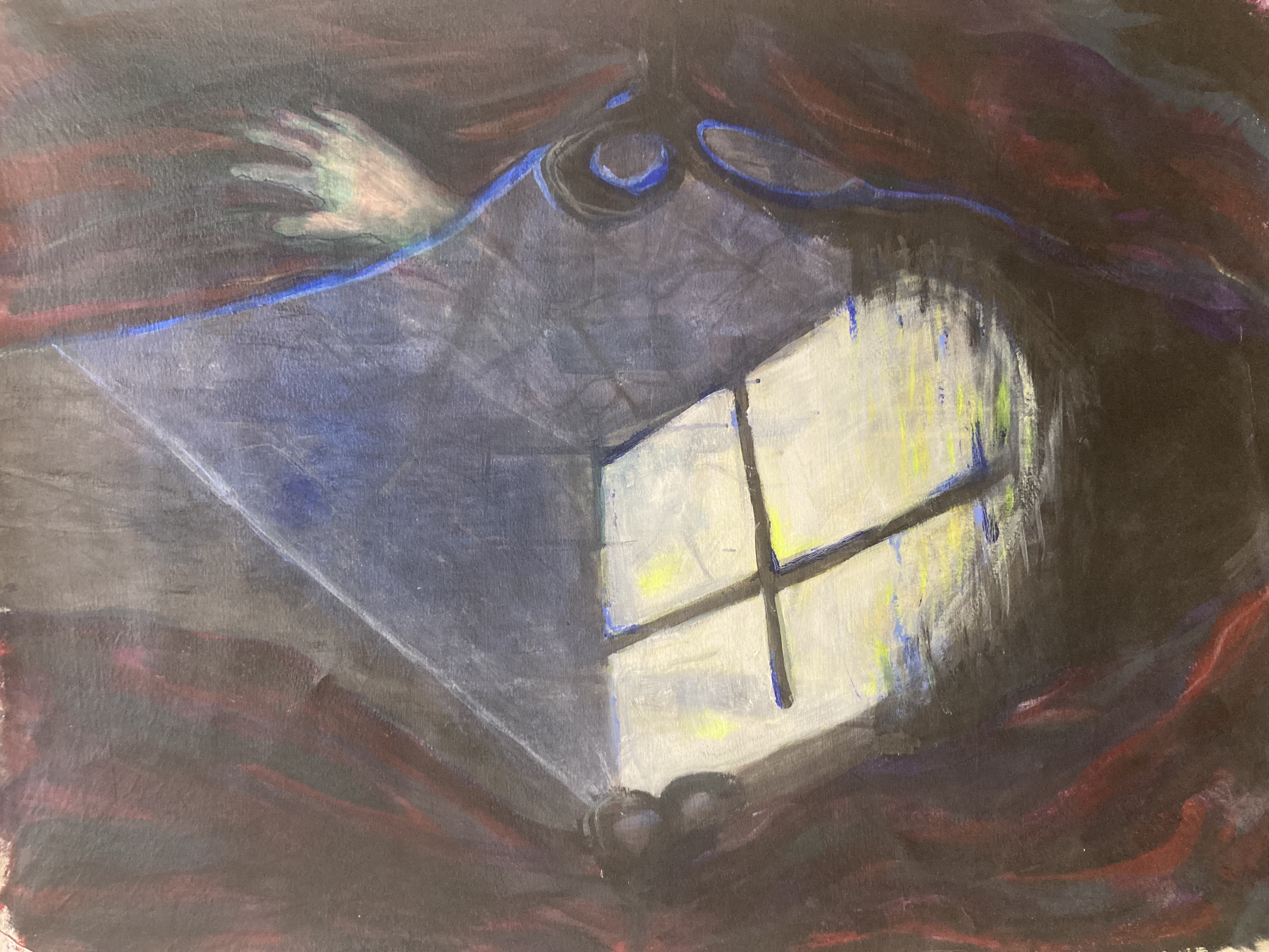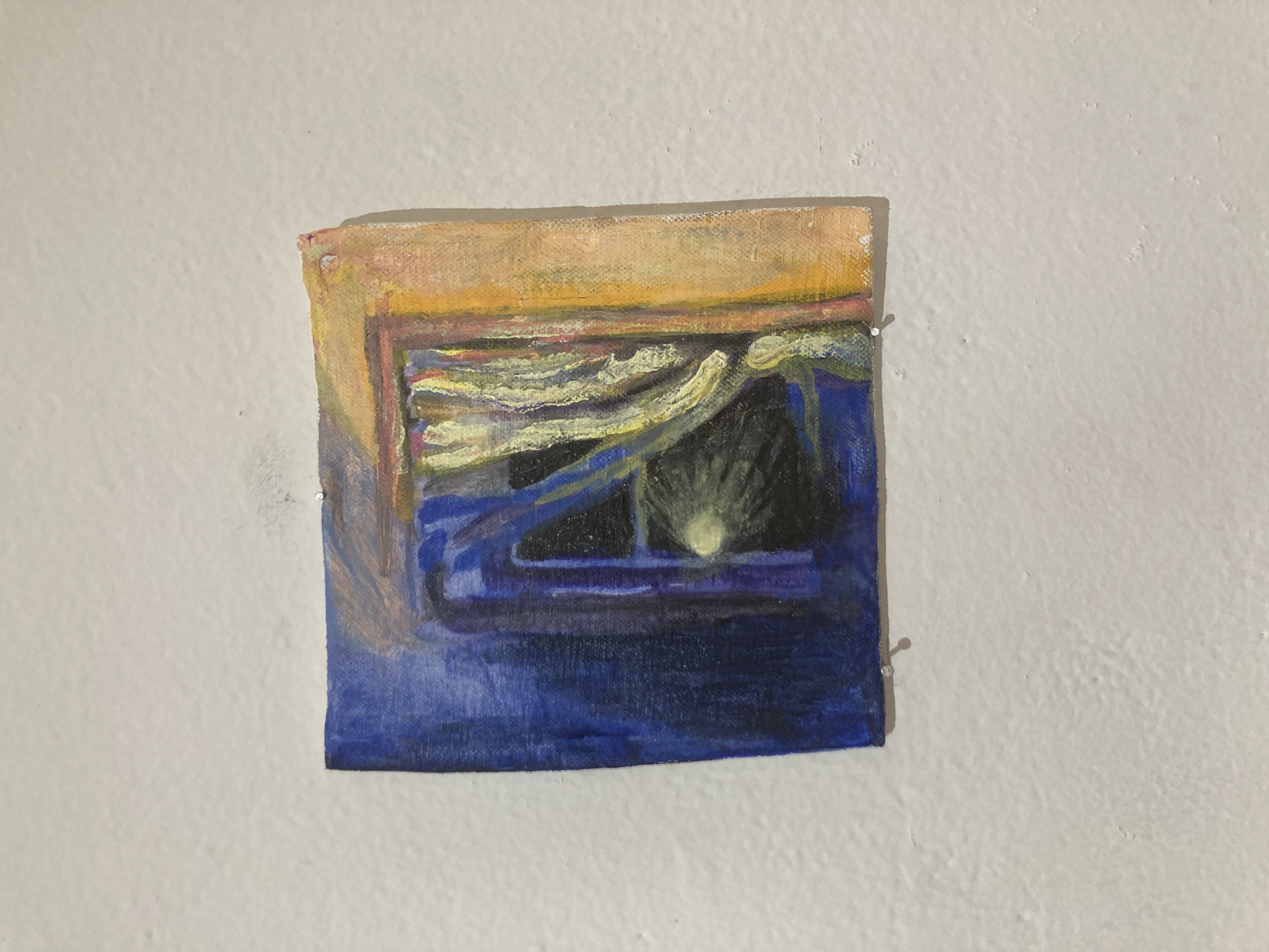 Falling Windows, acrylic paint, cardboard, canvas, 8.5”x6”, 2023
