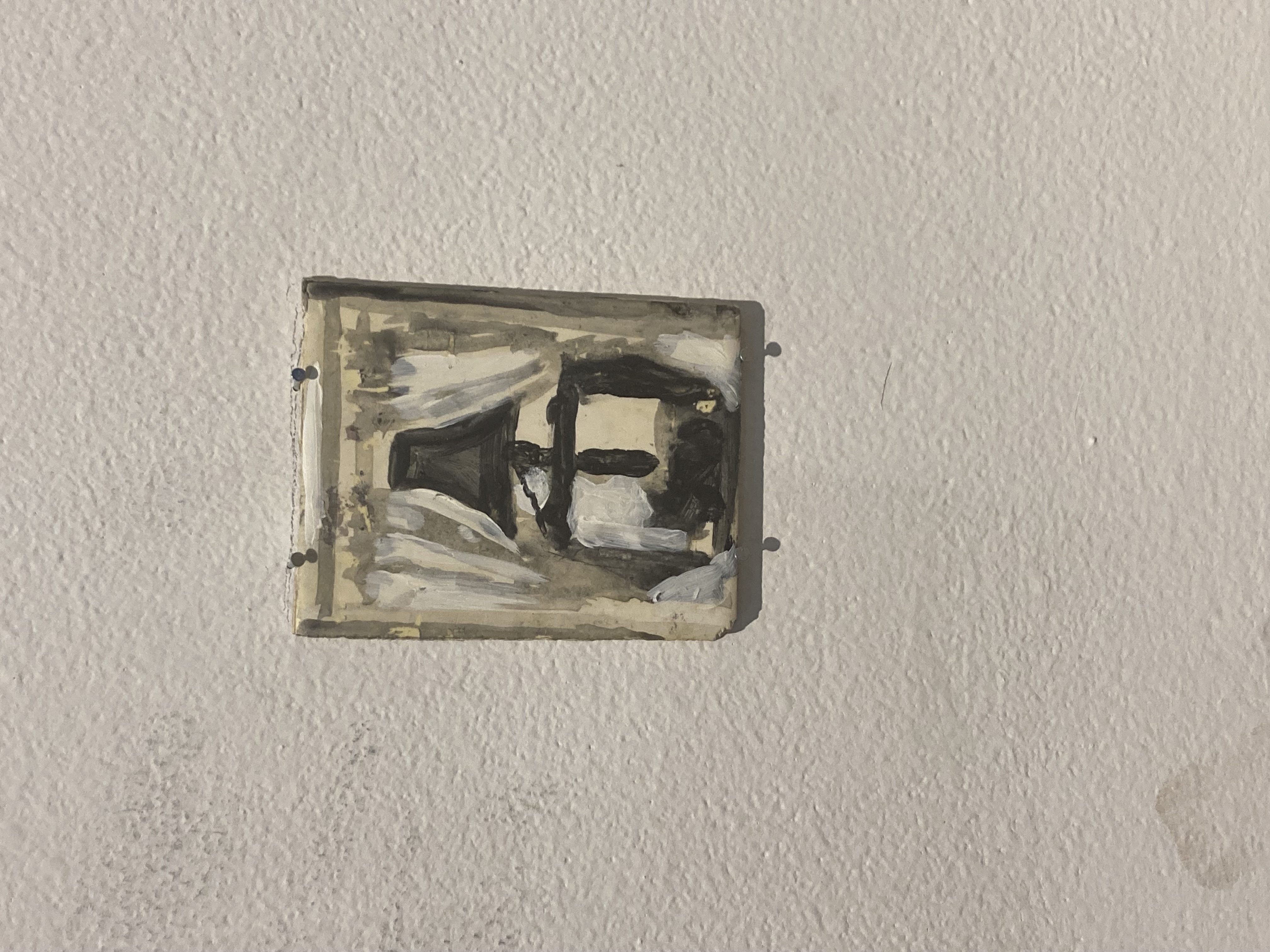 Light Switches and Outlets, acrylic paint on found tiles, 4.5”x4.5”, 2023