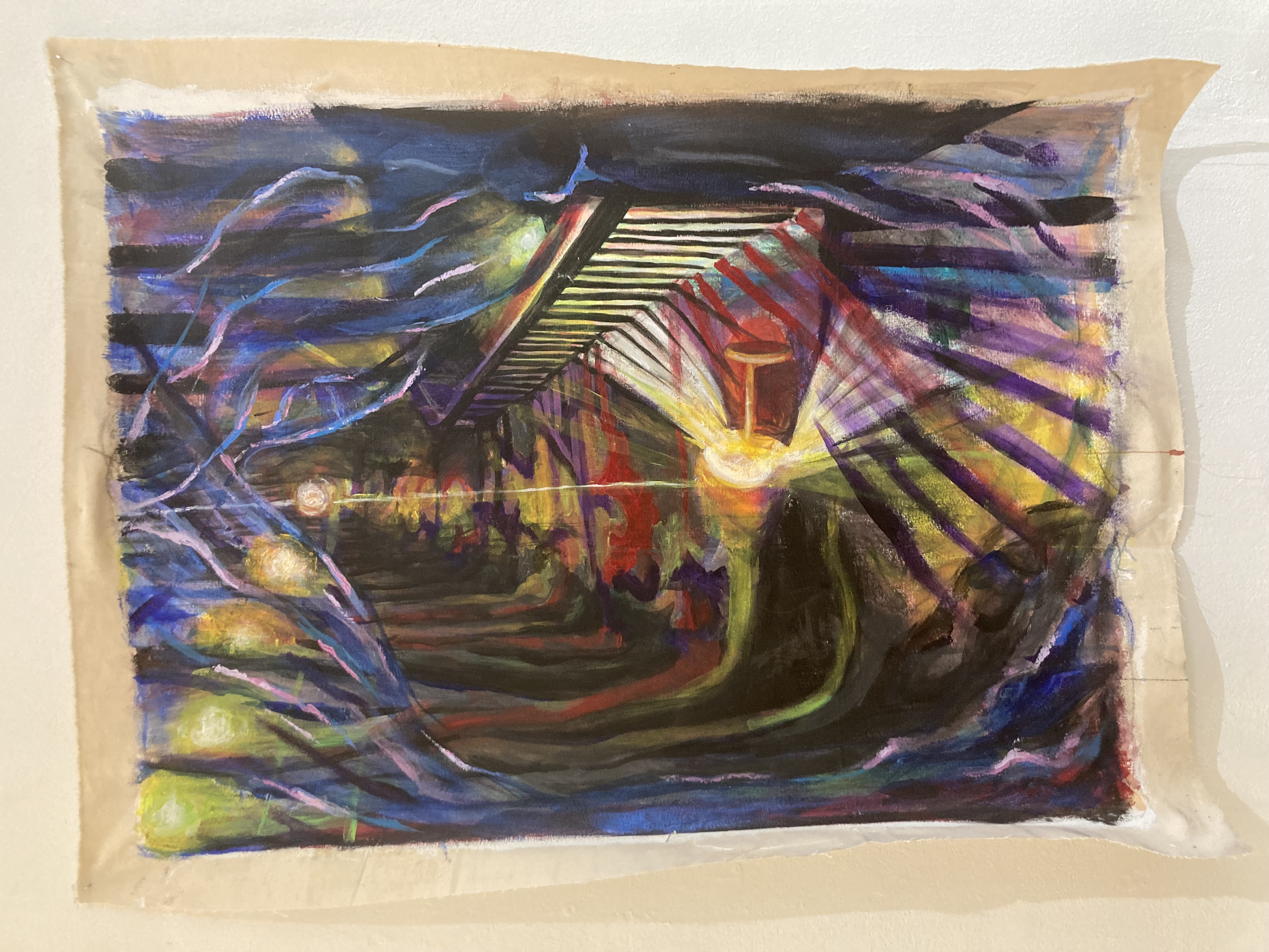 The Backstage of the City,canvas, acryllic paint, graphite, 3’ x 4’, 2023