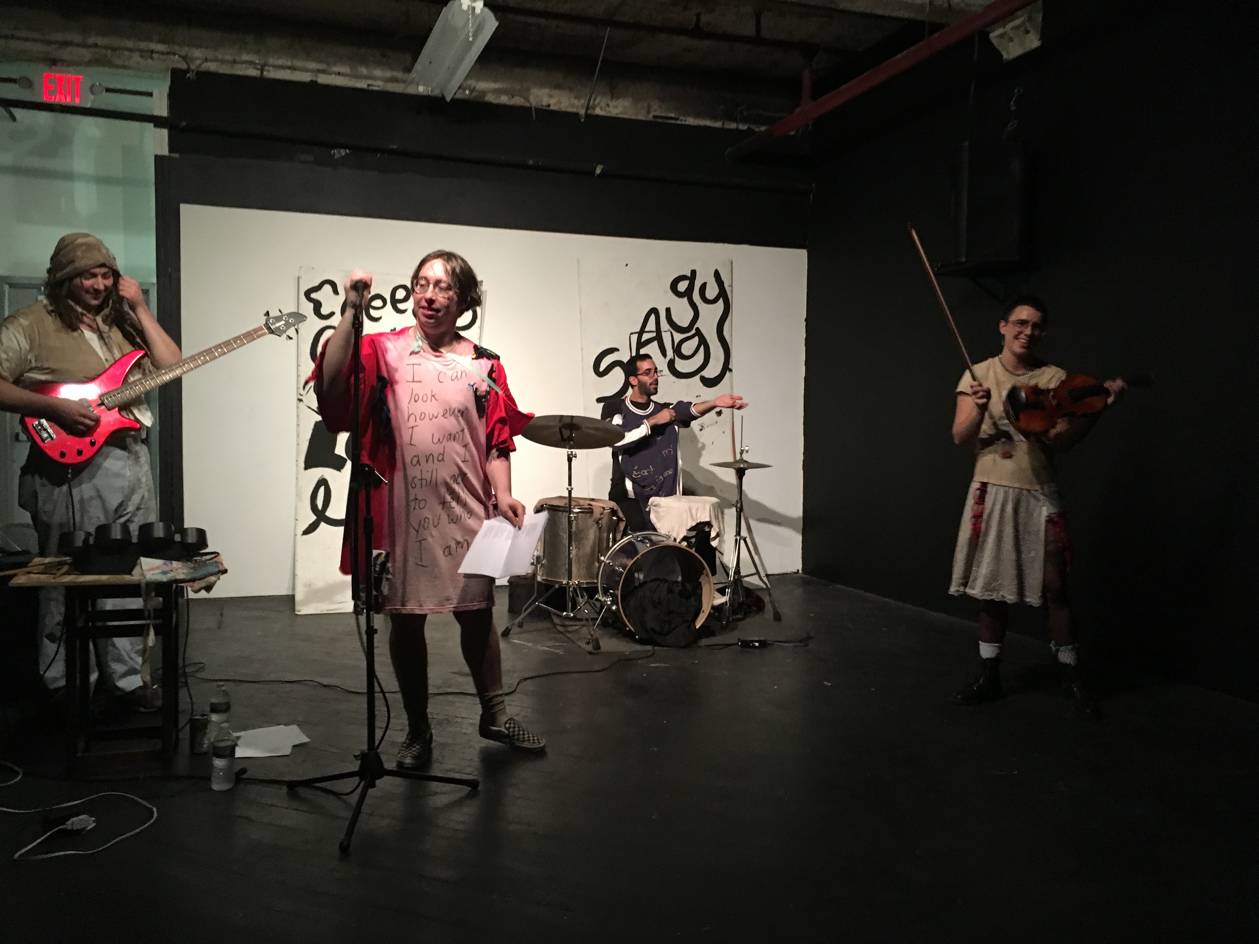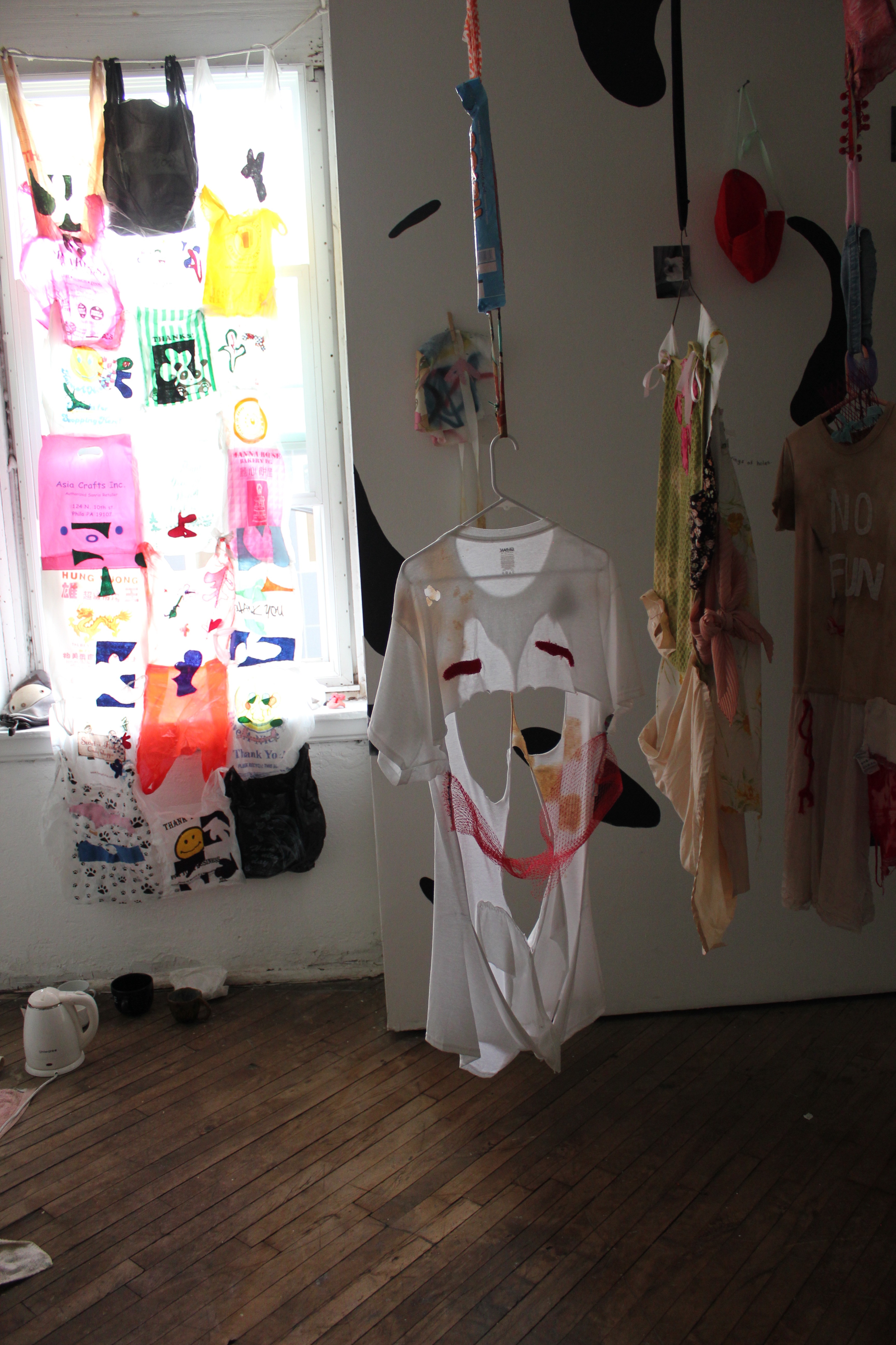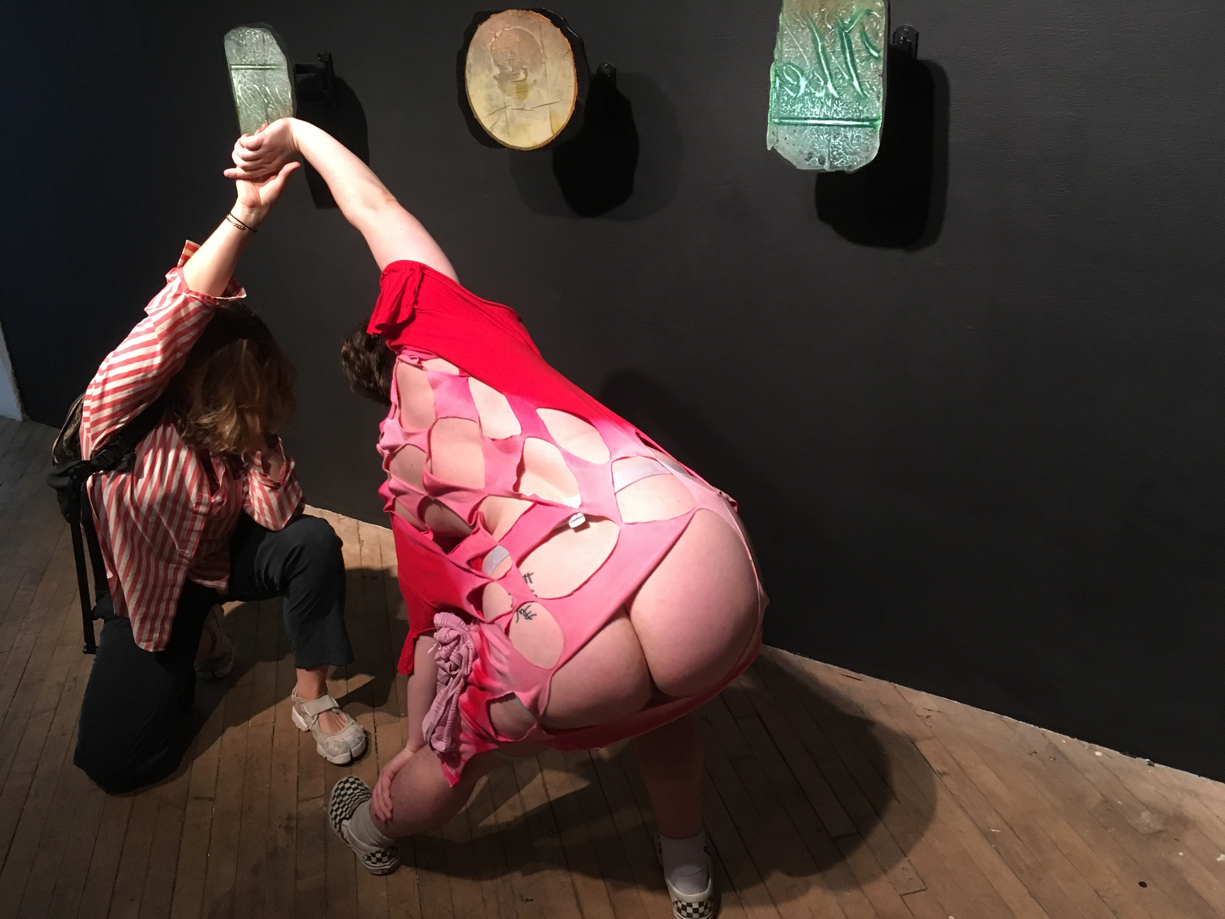 There were several clothing items that were installed in the space. Performers wore them as part of scheduled or unscheduled performances, clicking through the slideshow will show you details of that piece as well as the piece worn on someone.