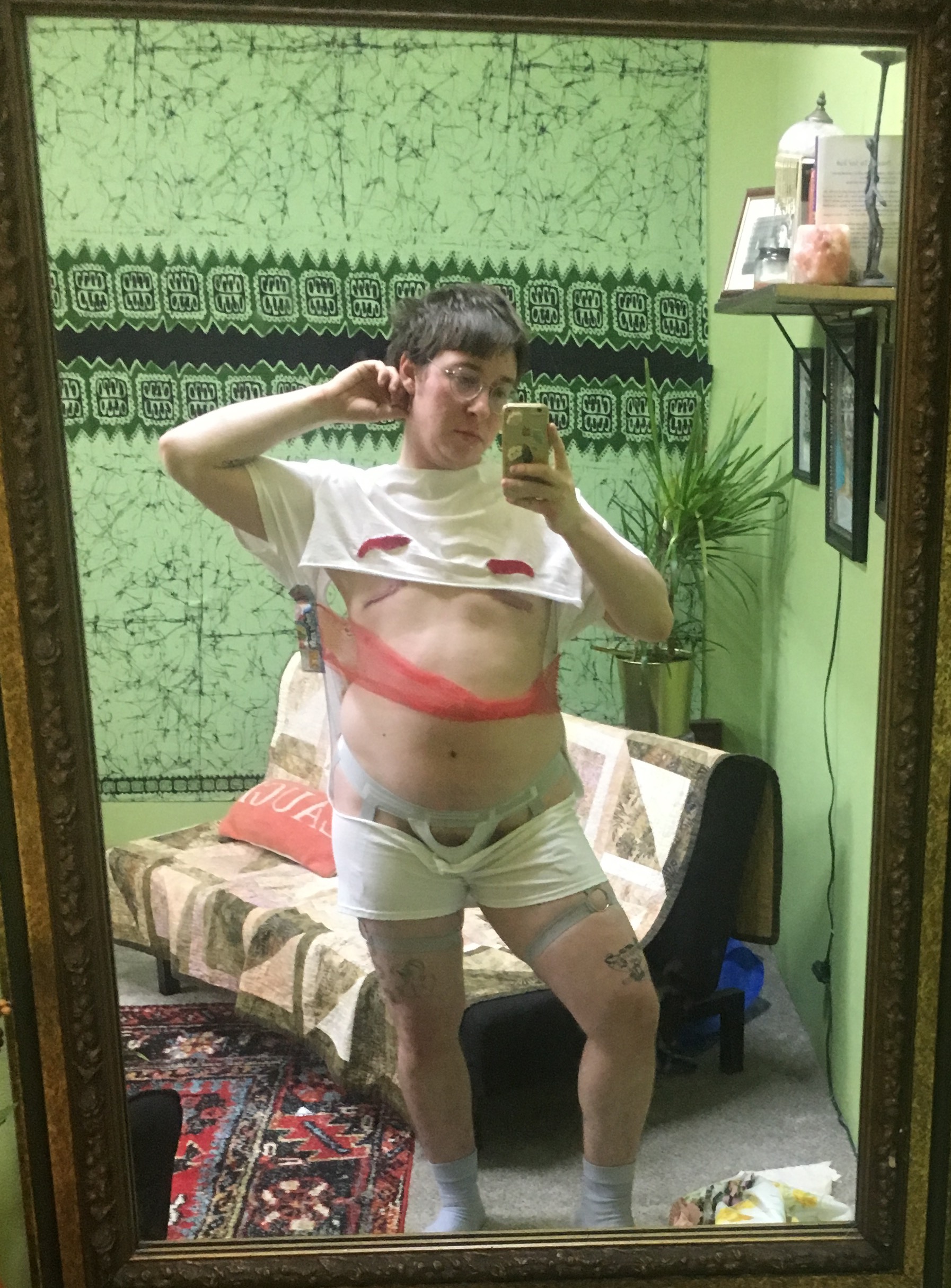 Each of My Tears is One Big Dick (2017-2018) found shirt, beads, glove, bell, ribbons