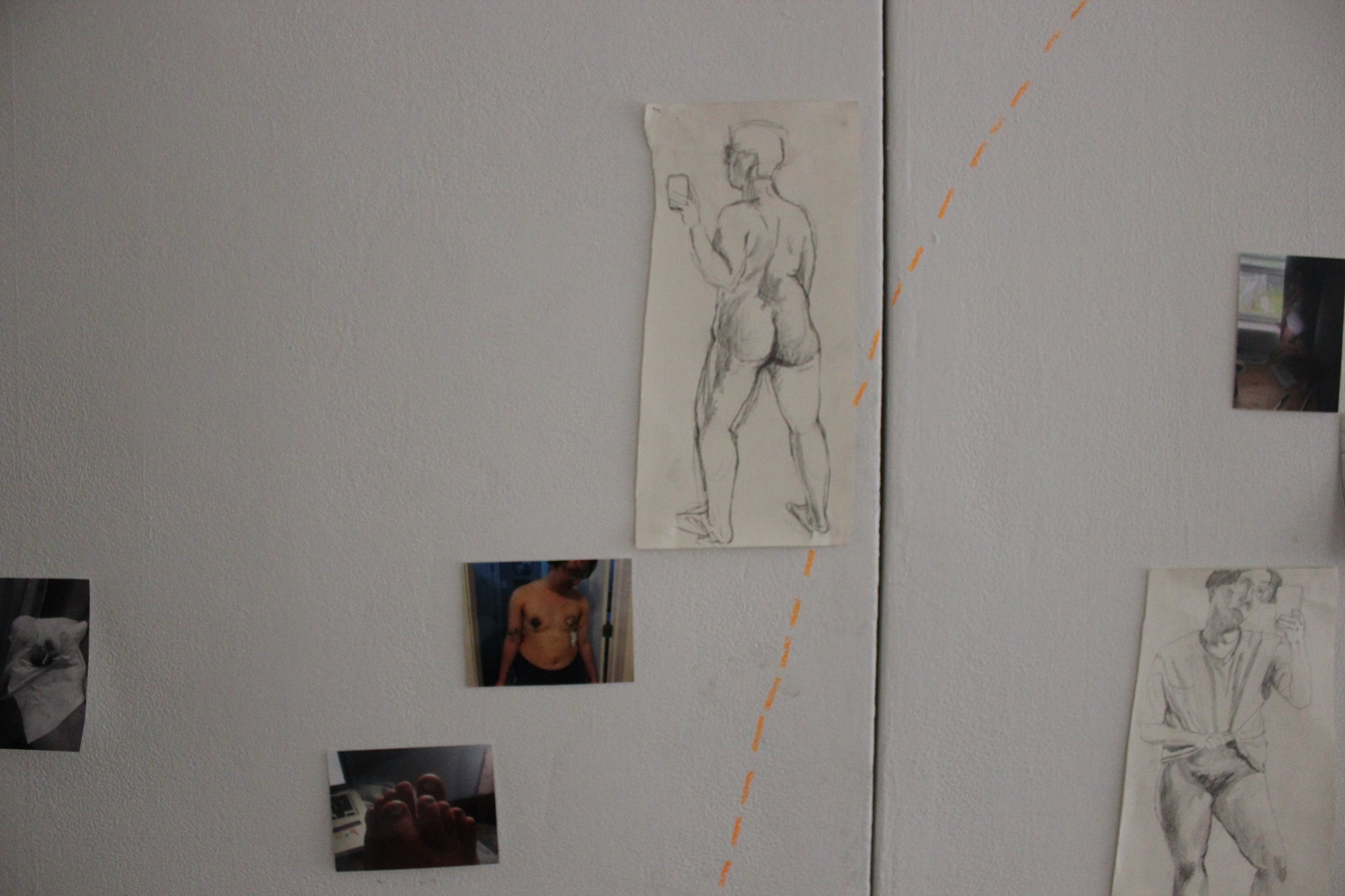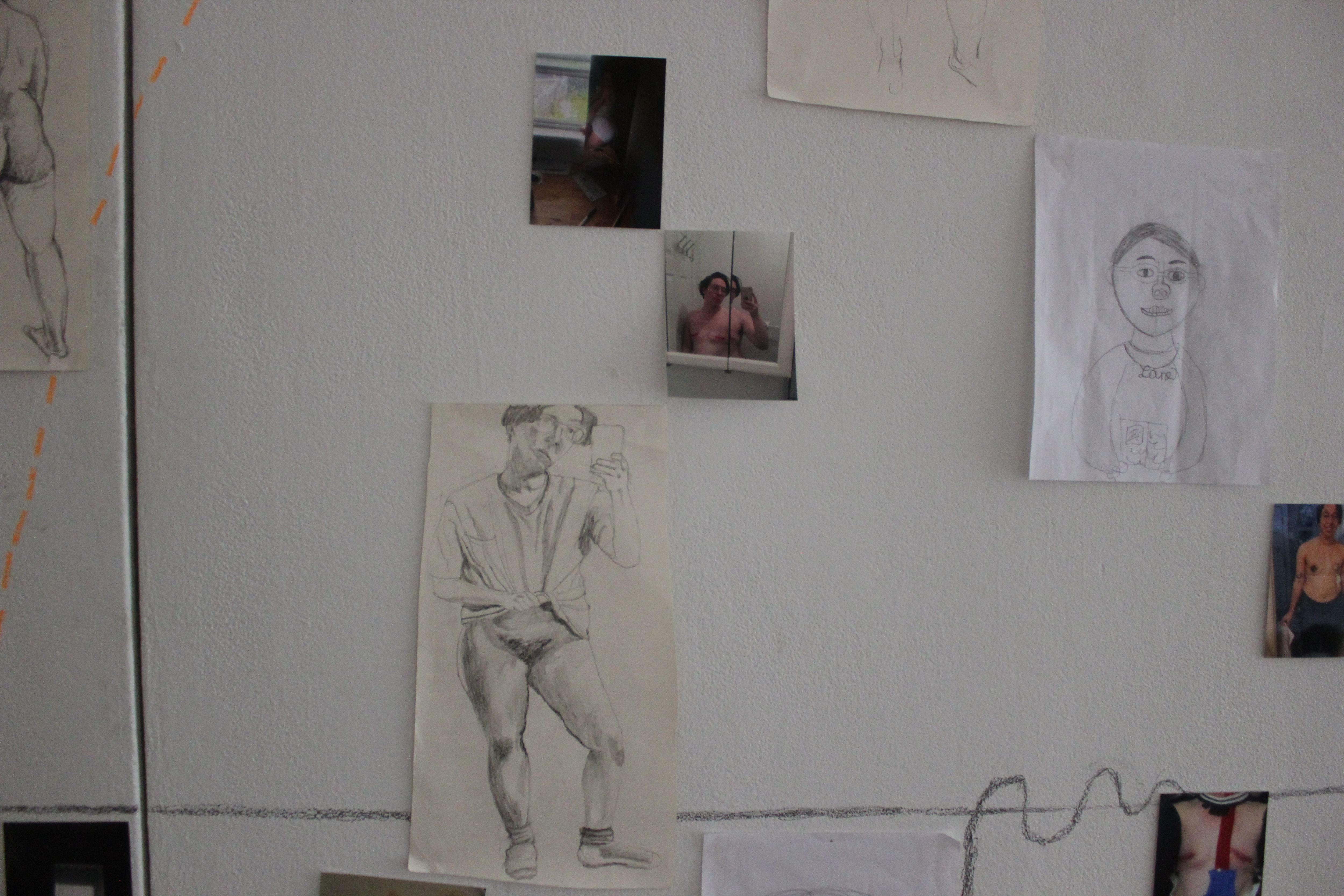 old and new photos of my body, drawings that my students made of me, drawings that I made of myself, drawing of a timeline