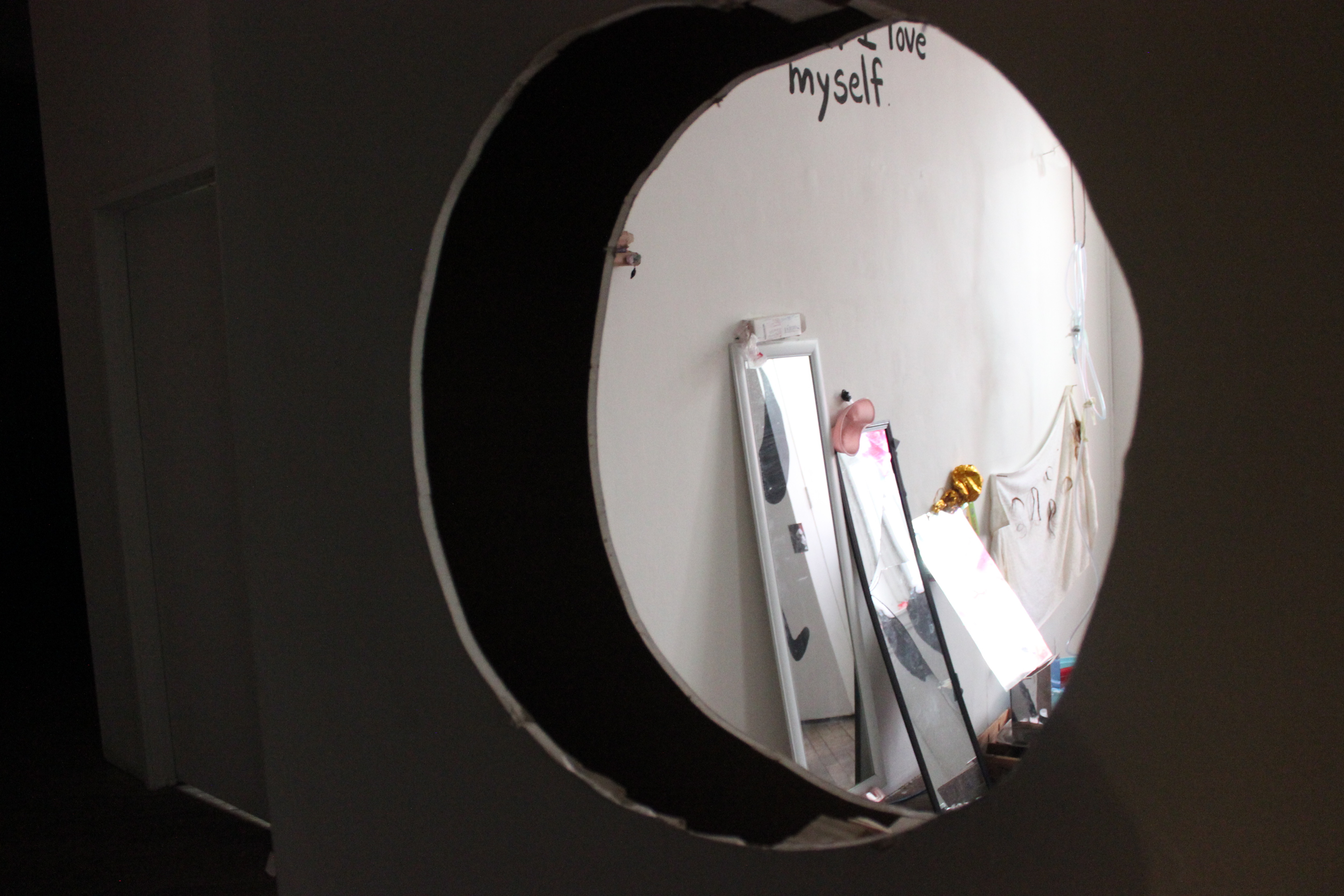 warped mirrors, objects found in my own trash or donated from the trash of friends and strangers