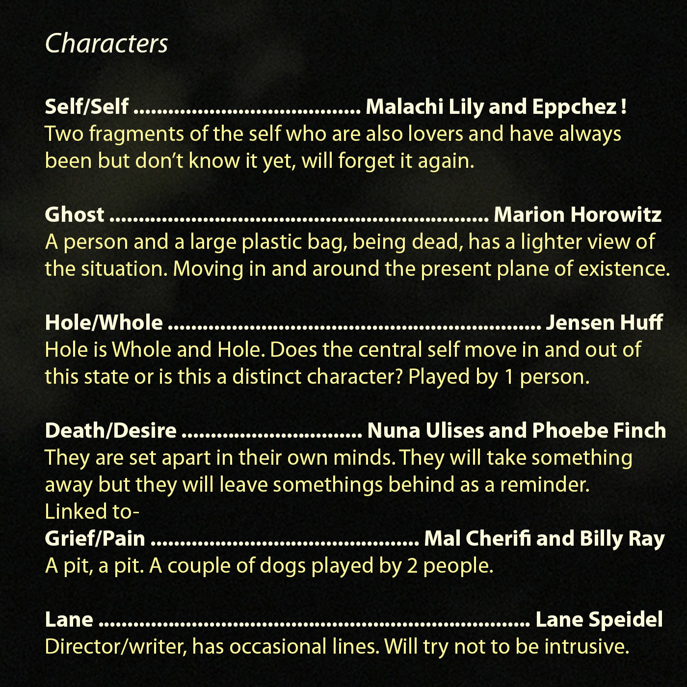 is a play written and directed by Lane Speidel, put up at Vox Populi Gallery in December of 2019.