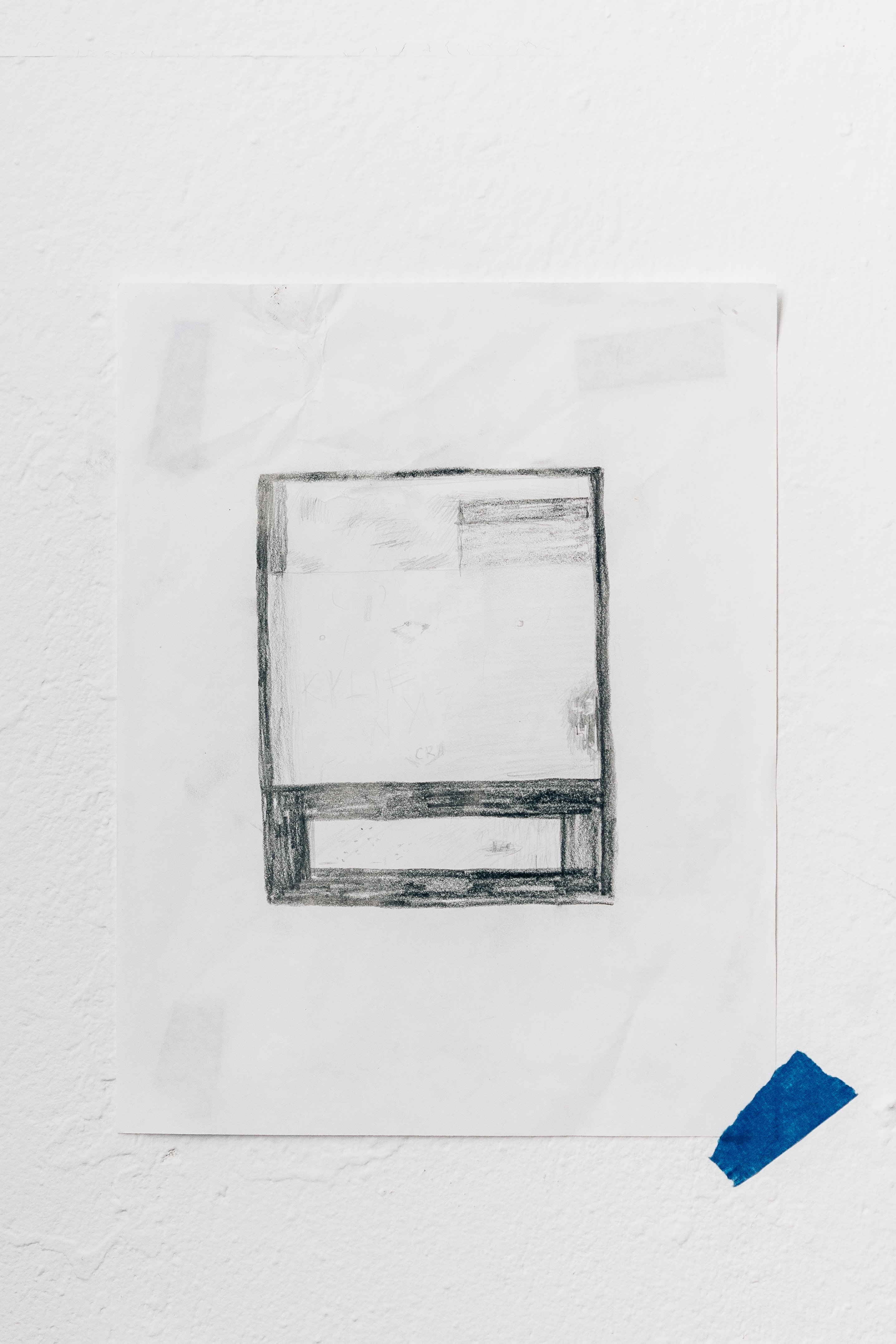 Take away the outside, 2019 a window installation made from trash bags, drawings of the windows in the hospital