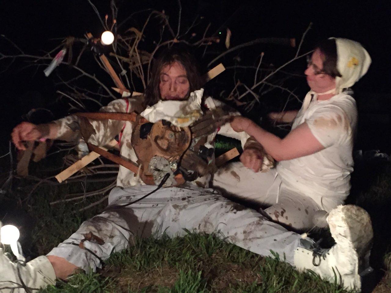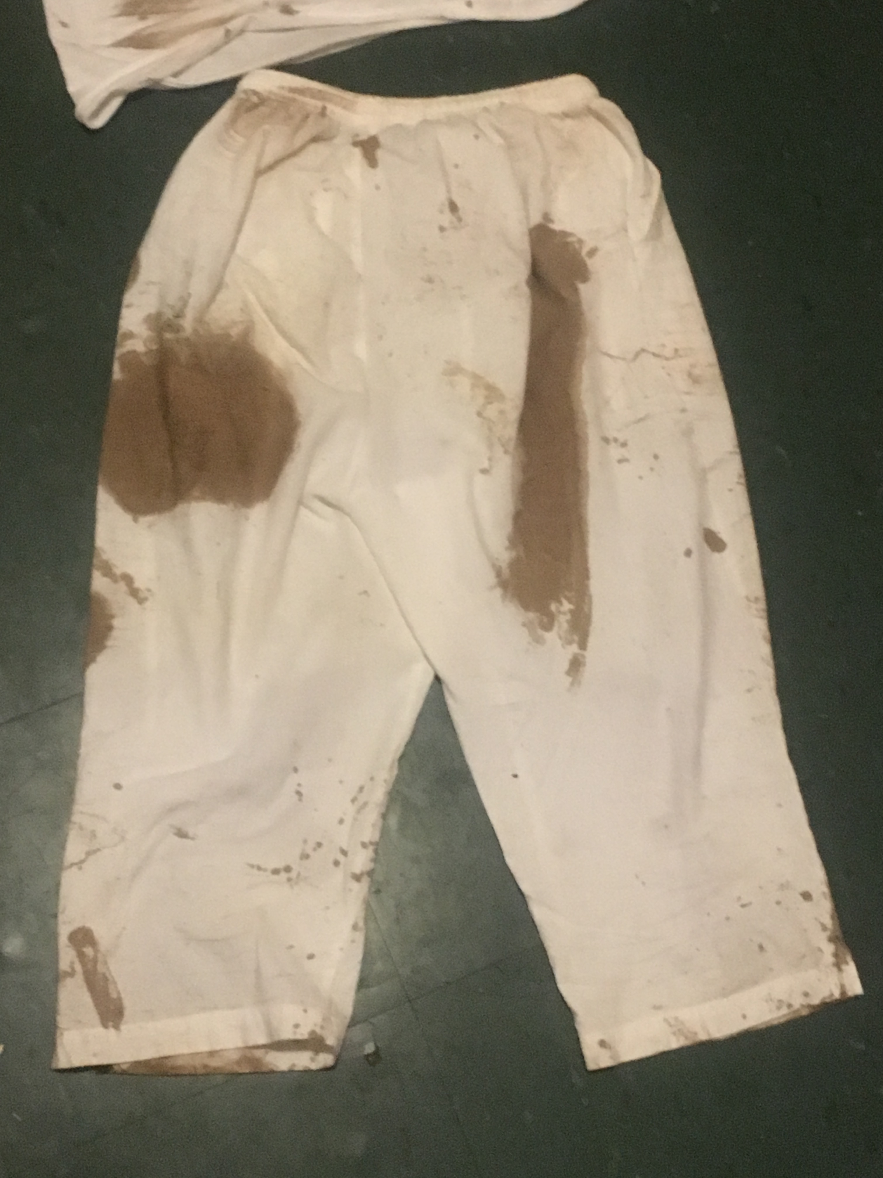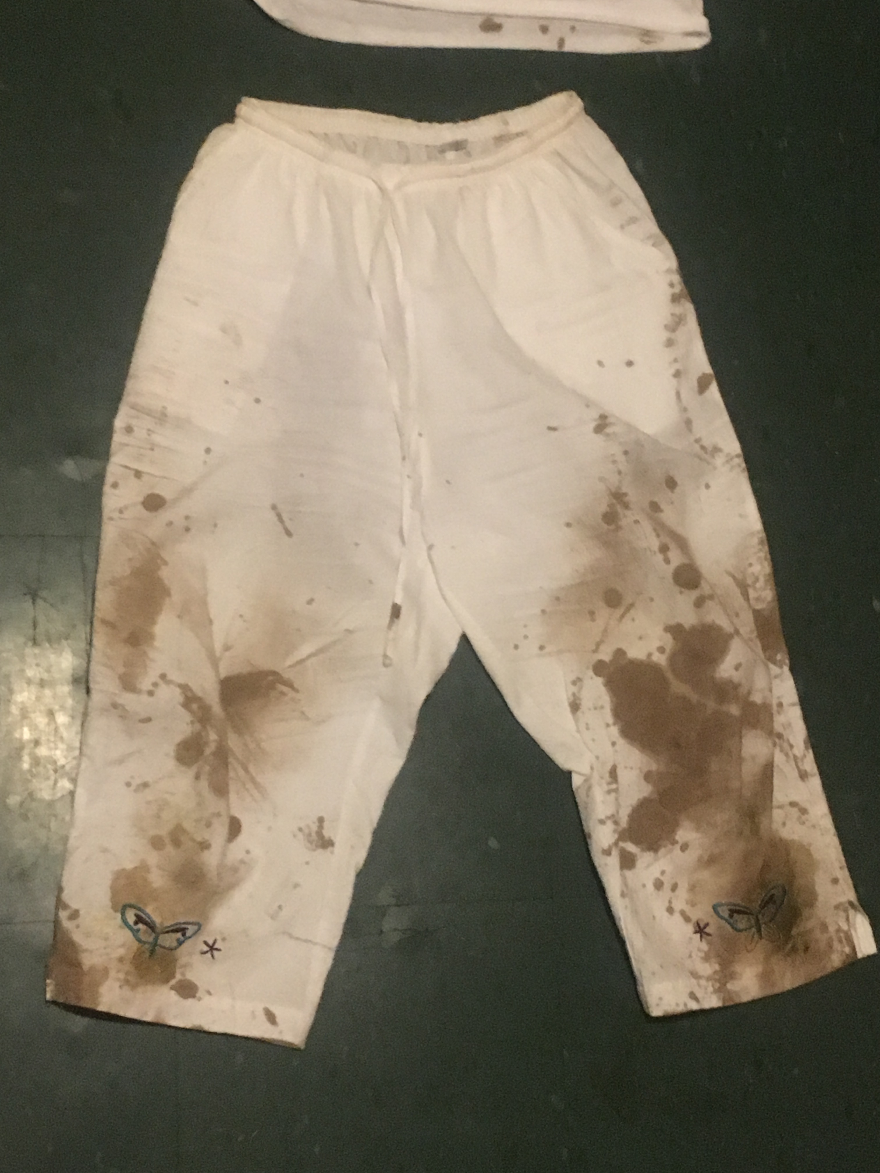 The performers dyed each other and rolled in dirt and stained their costumes made by Lane, these are pictures of the clothes.