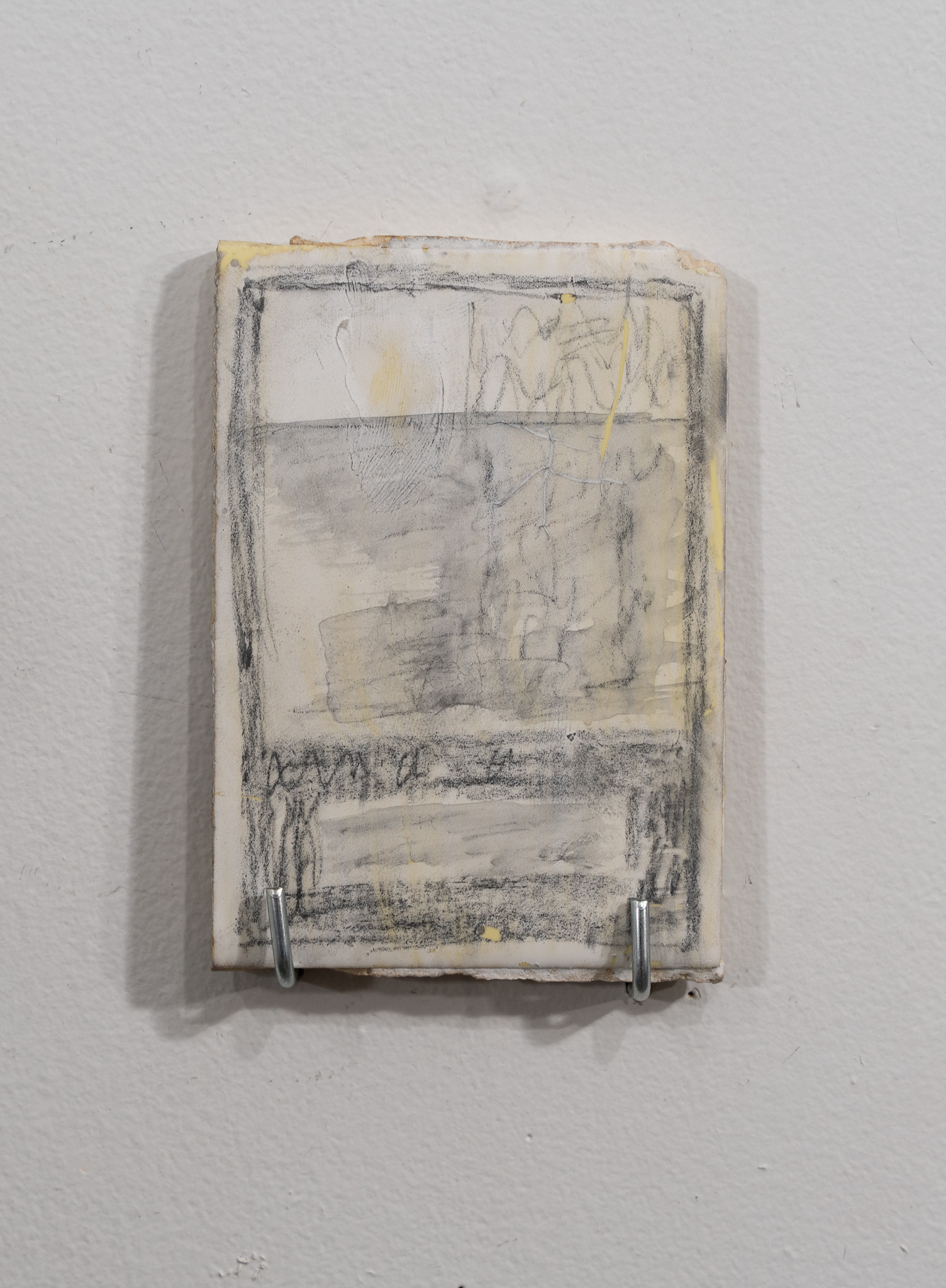 Front Window, acrylic paint and graphite on found tile, 4” x 5”, 2023