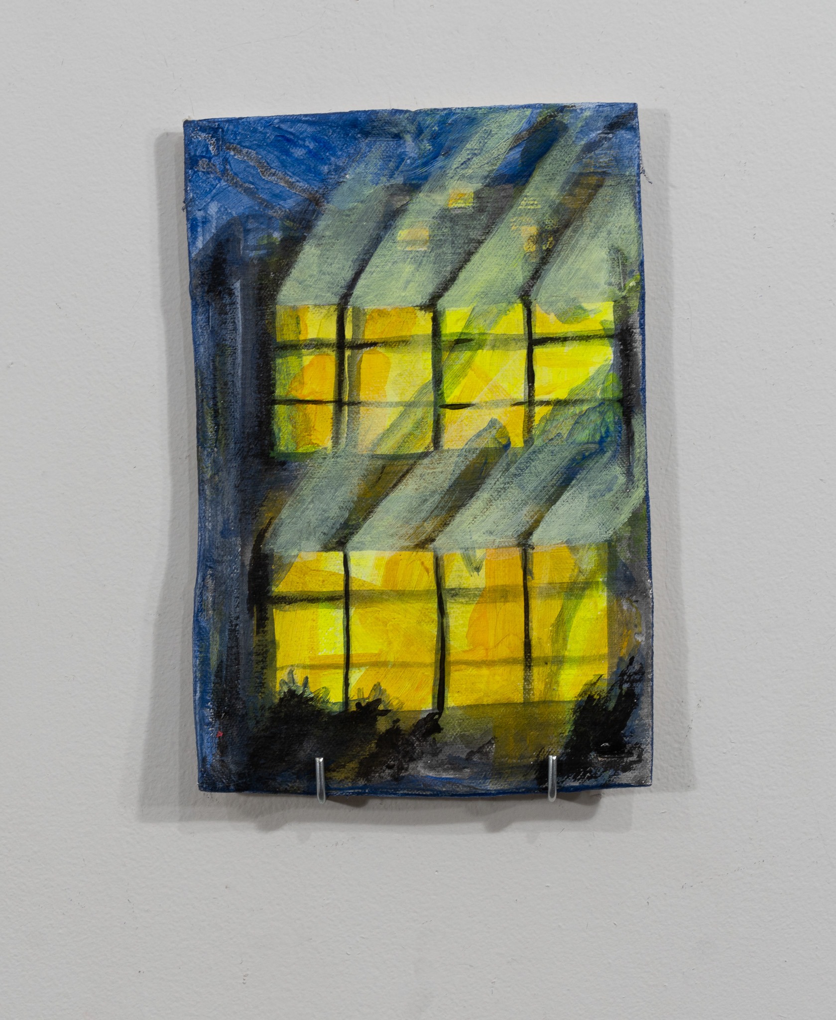 Falling Windows, acrylic paint, cardboard, canvas, 8.5”x6”, 2023